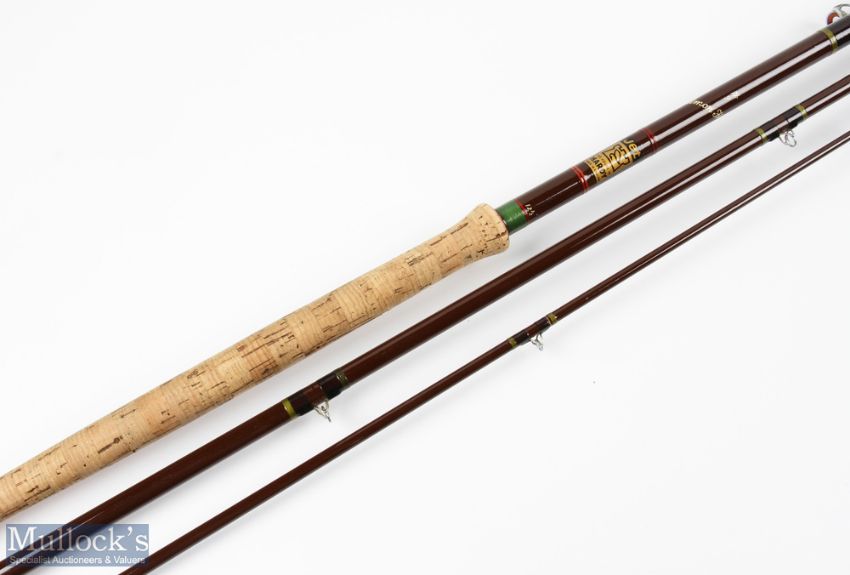 Hardy Alnwick "Jet Salmon Fly" hollow glass fly rod, 12' 6" 3pc, line 9#, 24" handle, alloy down locking reel seat, red agate butt/tip ring and acorns, light use, MOB