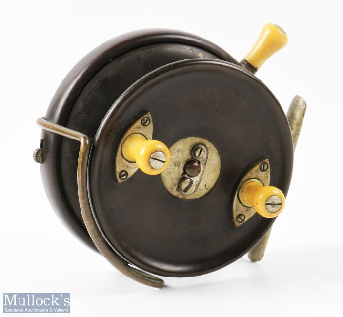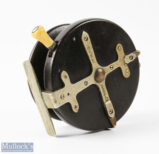 Hardy Bros Silex Ebona 5 1/8" 'Farne' Ocean Reel with ebonite drum and back plate, nickel silver reinforced Starback, ivorine handles and lever, with brass line guide, runs smooth