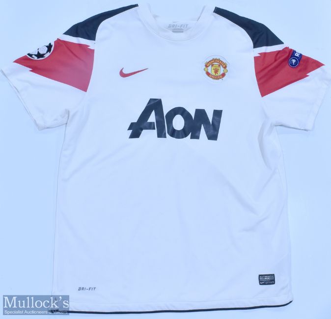 2010/12 Manchester United Away Football Shirt in white, AON/Nike, Champions League badge, short sleeve, size L