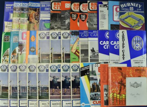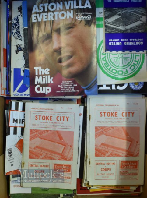 Quantity of 1960s onwards Assorted Football Programmes features 64/65 Wolverhampton Wanderers v Aston Villa (FAC replay), 63/64 Leeds Utd v Newcastle Utd, 65/66 Leeds Utd v Newcastle Utd, 68/69 Leeds Utd v Manchester Utd, Leeds Utd v Nottingham Forest, 69/70 Leeds Utd v Derby County, Leeds Utd v Ferencvaros, 64 Stoke City v Shrewsbury Town (FLC) single sheet, 63 Stoke City v Benfica, 64 Stoke City v Leicester City (LC Final), plus Internationals, a wide range of various teams, modern examples noted, condition mixed A/G overall (300+) 2x Boxes