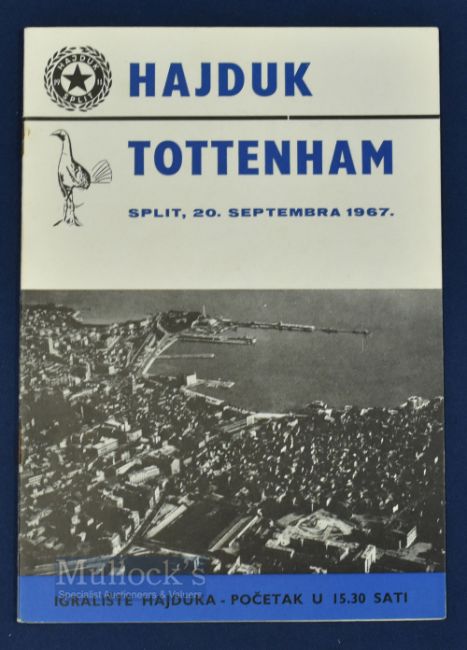 1967/68 European Cup Winners Cup Hajduk Split v Tottenham Hotspur 20 September 1967 match programme; good condition.