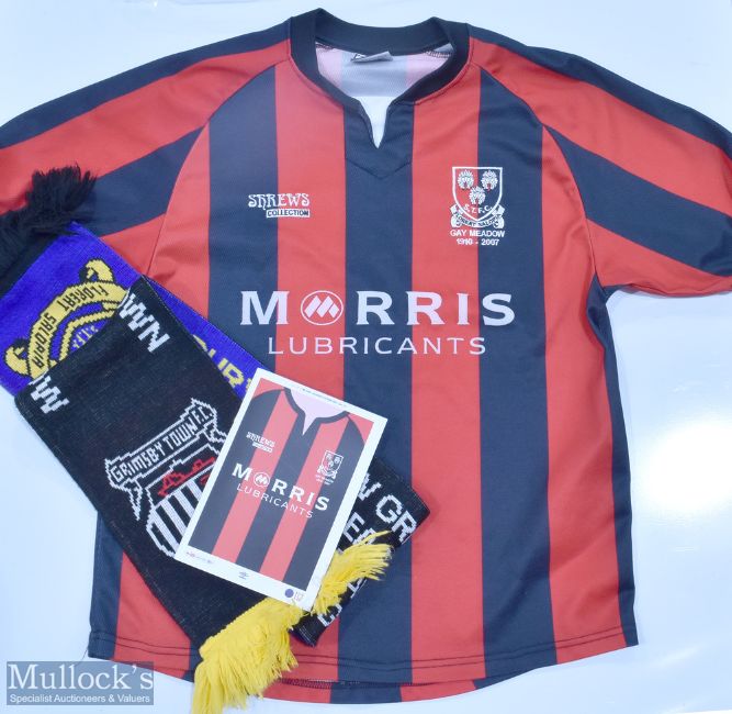 1910-2007 Shrewsbury Town Away Football shirt, the last game at Gay Meadow commemorative shirt made by MG sportswear, short sleeve size 40, with a final game at home scarf and a programme from Oct 22 showing the shirt