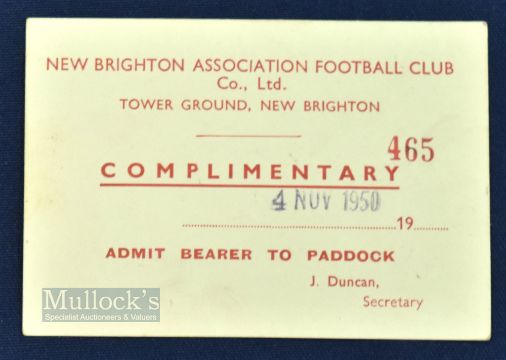 1950/51 New Brighton v Accrington Stanley Match Ticket date 4 Nov, in New Brighton's final Football League season, with writing to the reverse, appears otherwise in good overall condition