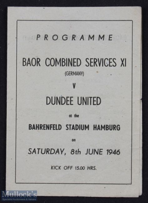 1946 BAOR Combined Services XI v Dundee United Football programme at Hamburg 8th June 1946, has been folded otherwise good