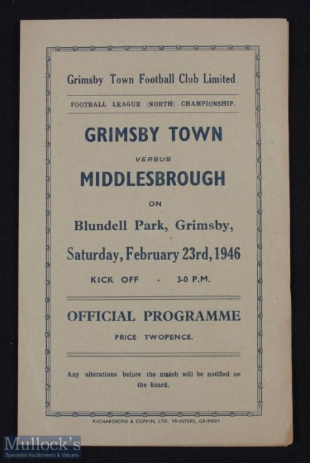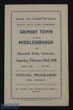 1945/46 Football League North Grimsby Town v Middlesbrough 4 page match programme, 23 February 1946; good condition.