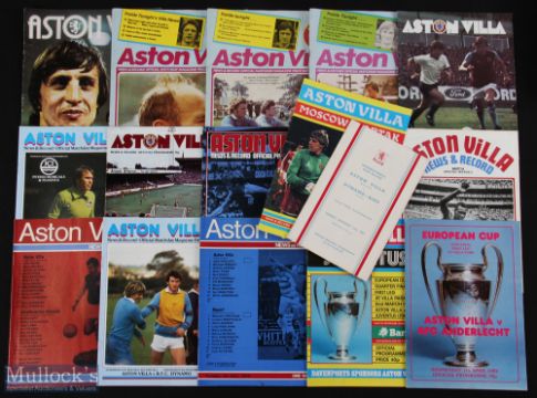 Collection of Aston Villa 'big match' home programmes 1983/84 Moscow Spartak (UEFA), 1982/83 Anderlecht (European Cup s/f), Juventus European Cup 1/4 final), 1981/82 Dynamo Berlin (EC), 1969/70 Napoli (friendly), Dunfermline Athletic (friendly), 1971/72 Santos (Pele) international club friendly, Gornik Zabrze (friendly), 1972/73 Bayern Munich (Breitner, Beckenbauer, Muller) (friendly), 1975/76 Royal Antwerp (UEFA), 1976/77 Royal Antwerp (friendly), 1977/78 Bilbao (UEFA), 1981/82 Valuer (Iceland) (EC), 1977/78 Barcelona (UEFA), Fenerbachce (UEFA), Gornik Zabrze (UEFA), 1961/62 Dynamo Kiev (friendly 13 November 1961; fair/good. (17)