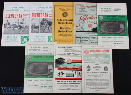 Selection of Glentoran FC home match programmes 1950/51 Linfield, 1956/57 Glenavon, 1958/59 Coleraine, 1960/61 Crusaders, 1962/63 Dublin Select XI (Walter Bruce benefit) 17 May 1963, 1965/66 Glenavon, 1967/68 Newcastle Utd (friendly) 20 October 1967, 1968/69 Glenavon; fair. (8)