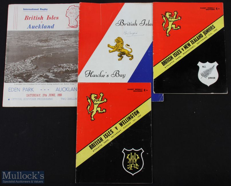 1959 British & I Lions Rugby Programmes (4): Hawkes Bay, large, signed by the legend George Nepia; Auckland, Wellington and NZ Juniors. VG