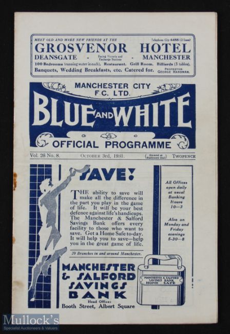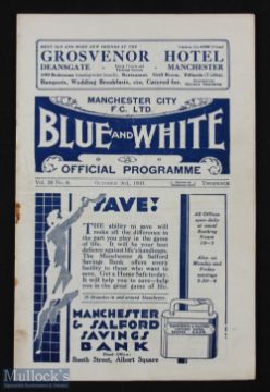 Pre-War 1931/32 Manchester City v Sheffield Utd Div. 1 match programme 3rd October 1931; rusty staple, fair. (1)
