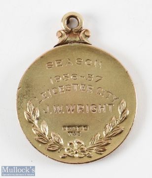 1956-57 The Football League Leicester City Winners Medal, for John William Wright (Billy Wright) a 9ct gold medal when Leister City won the Second Division for the 4th time by 7 points clear. Medal is 13.9g in weight