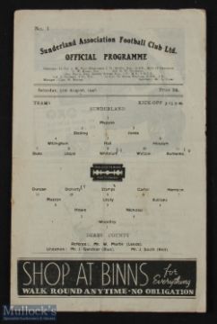 1946/47 Sunderland v Derby County Div. 1 match programme 31 August 1946 (1st match after WW2), 4 pager; fair. (1)