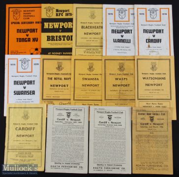 Newport Rugby Programmes (14): All homes, v Cardiff 1946, 48, 49, 68 & 75; v Swansea 1965 & 75; v Llanelli 1976; Navy, Wasps & Watsonians 1964; Blackheath 1968; Bristol 1978-9; and v Tonga (Centenary), 1974. Mixed/G