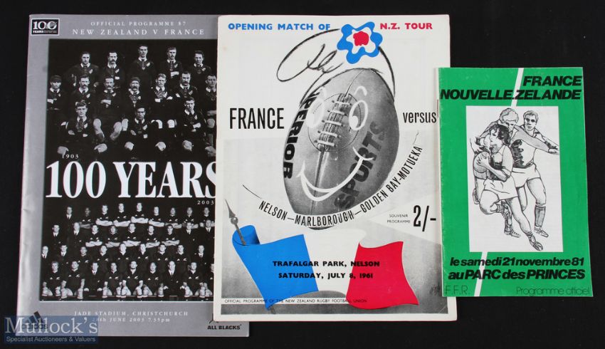 1961-2003 France and NZ Rugby Programmes (4): Lovely large issues for the most part, for Nelson-M'boro-Golden Bay-Motueka & for the NZ Maoris v France 1961; for NZ v France 21 Nov 1981 in Paris; & for NZ v France, Christchurch, June 2003, 100 yrs of NZ Test Rugby. VG