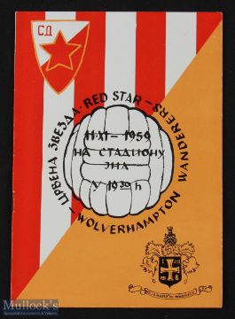 1959/60 European Cup Red Star Belgrade v Wolverhampton Wanderers programme 11 November 1959 1st round match; good. (1)