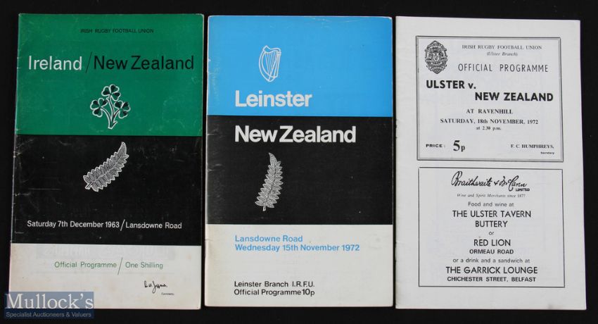 1963/72 NZ All Blacks in Ireland Rugby Programmes (3): v Ireland 1963 and v Leinster and v Ulster, 1972, the last the famous 'armed soldiery' match. VG