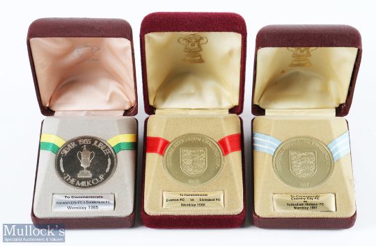 Wembley Commemorative Challenge Cup Milk Cup Medal, 1985 Milk Cup Norwich City v Sunderland, 1986 Everton v Liverpool, 1987 Coventry City v Tottenham Hotspurs all with their original Wembley display boxes (3)