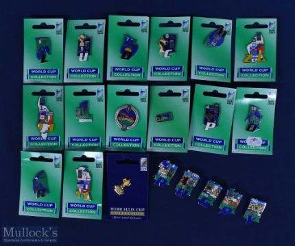 2003 Count Down to RWC Enamel Badges (19): official world cup team badges, 15 on original cards + 4 loose