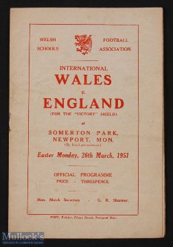 1951 Wales boys v England boys at Somerton Park, Newport 26 March 1951, creases, fair condition. (1)