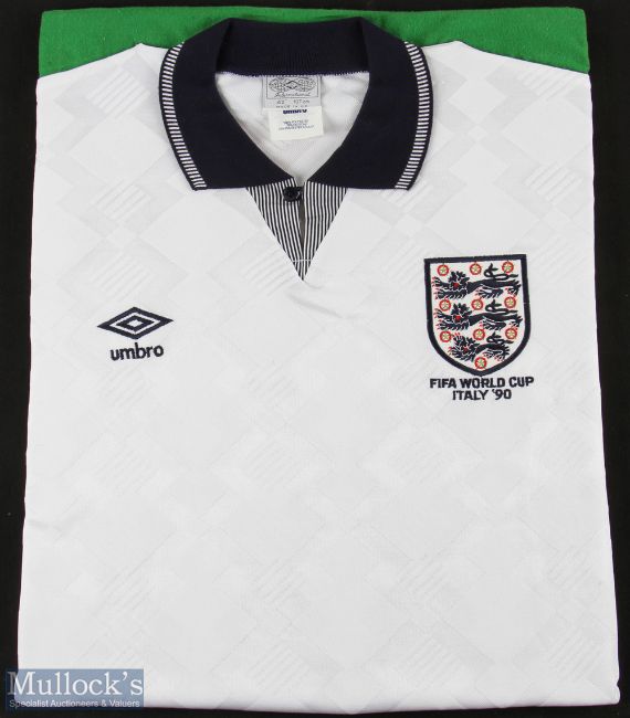 1990 Umbro England World Cup Italy replica Shirt, with FIFA World Cup Italy 90 embroidered below England crest size 42" short sleeve - has been pinned to card for display