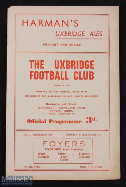 1955/56 Uxbridge v Brighton & Hove Albion friendly match programme 4 May 1956; good. (1)