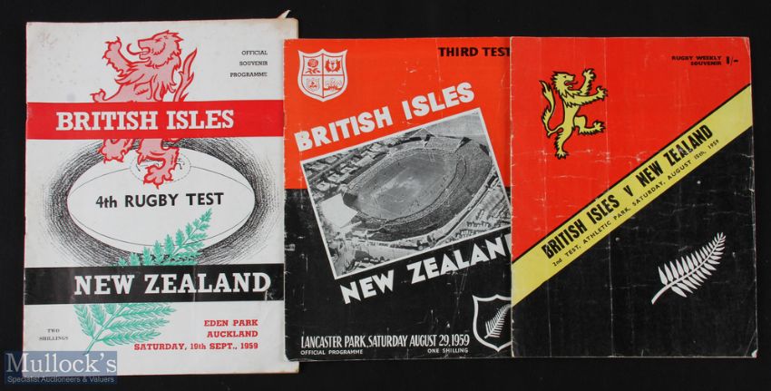 1959 British & I Lions Rugby Test Programmes (3): Second, Third & Fourth NZ tests: Wellington, Canterbury & Auckland. Generally G, a little wear here & there