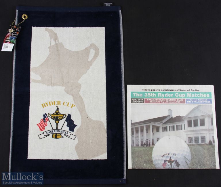2004 Ryder Cup Oakland Hills official items (2) Oakland Hills Ryder Cup Bag Towel c/w original retailer's label and The Oakland Press "Special Edition" Ryder Cup Newspaper Review