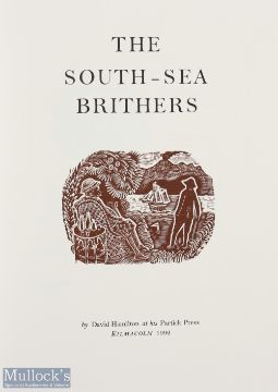 David Hamilton signed - "The Britherhood - Early Golf in the South Sea" publ'd 1992 ltd ed no. 53/150 copies in quarter Hessian and marbled boards, 39p, wood engravings by John O'Connor, c/w end pocket with "dubious golfing ephemera from the early days of the island republic. The book is a light-hearted look at colonial golf in San Serriffe. The club song is perhaps by Edwin Morgan (note only 150 copies were produced in quarter hessian) hence (VG).