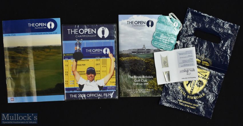 Padraig Harrington 2008 Royal Birkdale Open Golf Championship related items (5) incl 2008 Official DVD Film (unopened); Guest Club Marquee Season Badge; Starting Times for the last day; Guide to Management of The Links for Wildlife and Conservation and Pitch Repairer on the original 2008 Card with instructions and Professional Shop carry bag