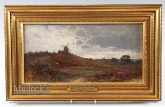John Wilton Adcock (1863-1930) oil on board Reigate Heath Golf Club Surrey 1898 - signed to the lower left corner - image 6.25" x 12.75" - overall 10.5" x 16.75