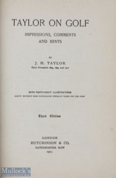 1903 Taylor on Golf by J H Taylor impressions, comments, and hints 48 illustrations - 3rd edition with decorative boards G