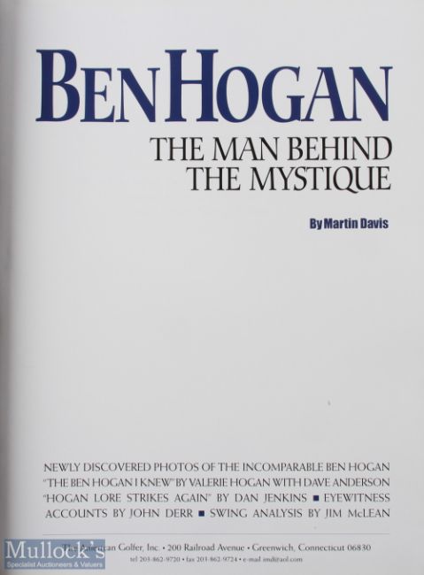 Martin Davis - "Ben Hogan - The Man Behind The Mystique" publ'd 2002 by The American Golfer Connecticut - large coffee table illustrated book to incl newly discovered Photos et al - a great record of his achievements and resilience - one of the great all time golfers (VG)