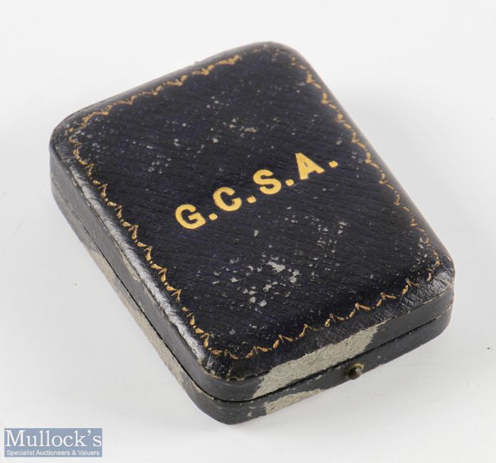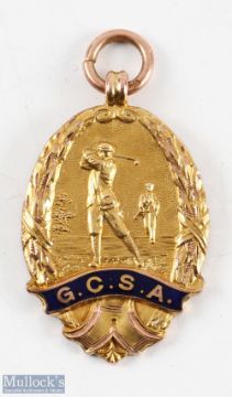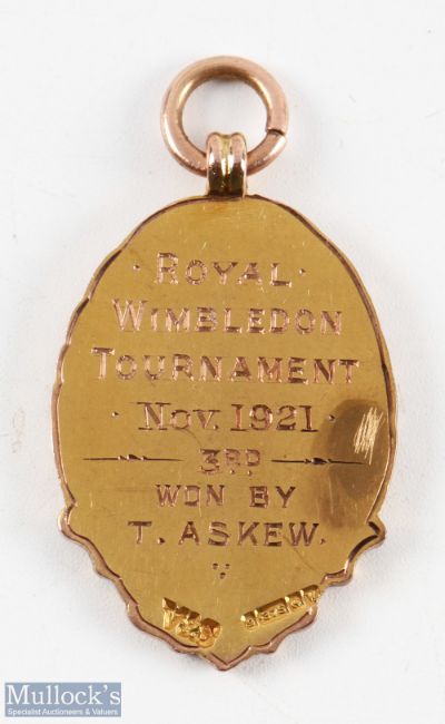 GCSA Royal Wimbledon Tournament Nov 1921 9ct Gold Medal - won by T Askew Nov 1921, embossed golfing figure and enamel to obverse, oval design, wt 11.8, within box marked GCS.A to top