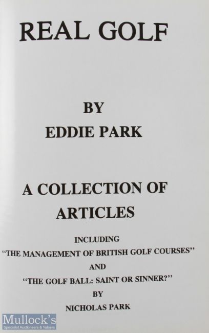 Eddie Park (Contributor to Golf Monthly) - "Real Golf - A Collection of Articles including The Management of British Golf Course and The Golf Ball: Saint or Sinner" 1st ed 1990 ltd ed no 200/1000 - in the original green and gilt boards and spine - complied by his wife Nancie Park following the sudden parting of her husband Eddie Park - a wonderful collection of articles covering a vast array of subject matters - illustrated (VG)