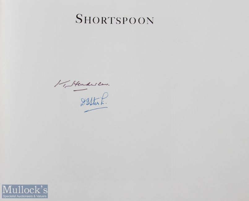 Henderson & Stirk signed - "Shortspoon - Major F P Hopkins 1830-1913 Golfing Artist & Journalist" 1st ed 1984 ltd ed no 34/750 signed by both authors to the first title page, original green and gilt cloth boards c/w coloured print of Group of Golfers at Westward Ho! laid down to covers, c/w matching slip case with colour print of Ladies Golf Westward Ho! - overall (VG)