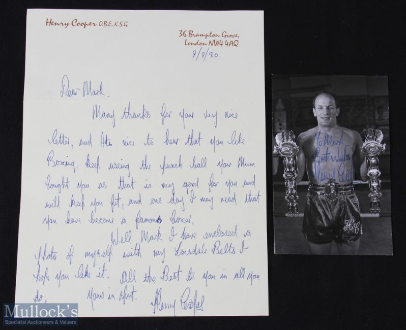 Boxing - Henry Cooper Boxing Autographs to include signed Photograph plus a handwritten letter on Henry Cooper letterhead signed at the end by Cooper dated 1980