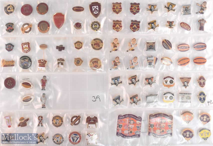 Huddersfield Giants Rugby League enamel badge selection to incl' Cardiff Millennium Magic, Giants, etc, varying styles, shapes and sizes (#70)