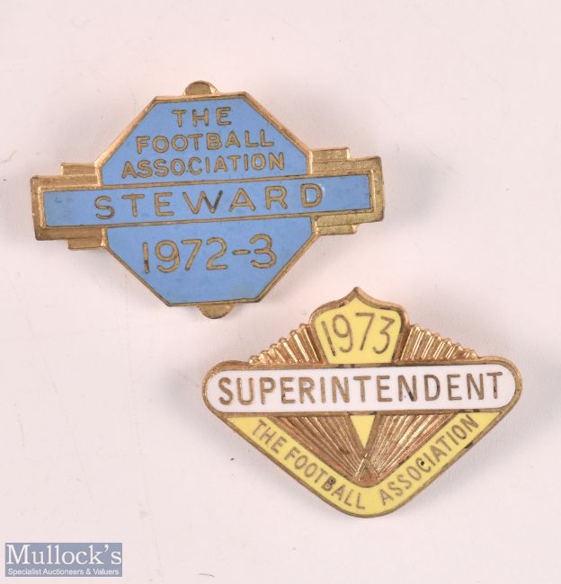 1972 + 1973 The Steward FA Association Superintendent Enamel Badges (2)