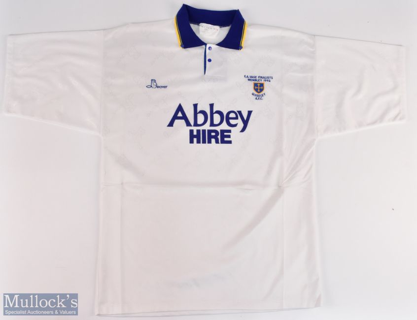 1992 Guiseley A.F.C F.A. Vase Finalist Wembley 1992 Commemorative Replica Football Shirt, made by One Stop Soccer Shop Beaver size L, short sleeve with Abbey hire sponsor