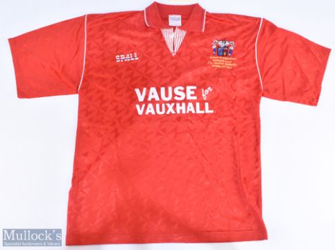 1990 Barrow AFC Auto Windscreen Shield Final Winners Wembley Replica Football Shirt, made by Spall size LM 42"-44", short sleeve with Vause Vauxhall sponsor