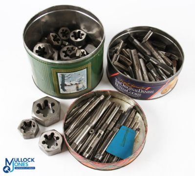 Vintage Engineering Tools a lot of Imperial Reamers - Tap and Dies, with noted makers of Lyndon, Dormer, Presto, in 3 tins, heavy item #12kg