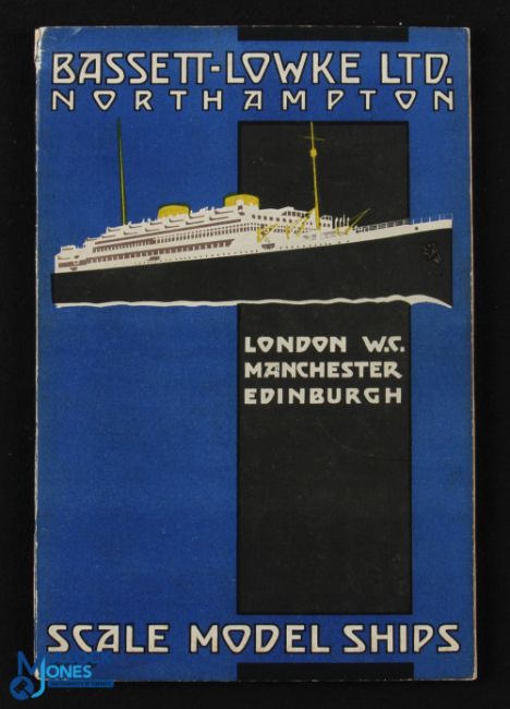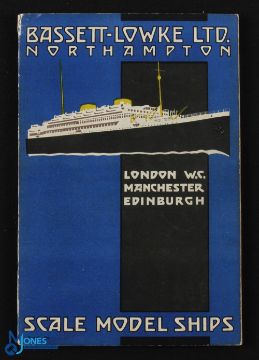 Bassett-Lowke, Northampton 1936 Scale Model Ships Catalogue - extensive 88 page catalogue illustrating and detailing with specifications & prices model craft from Sailing Boats to Ocean Liners & Warships, has several full page photographs of 5 foot long large Exhibition Models of Ocean Liners of the period. Printed of fine semi-gloss paper in illustrated Card Cover, size 6" x 9"