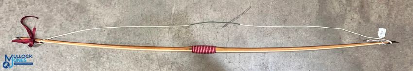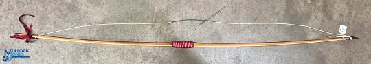 Stuart Homer 2003 Poole Longbow with maker's details, 40 / 29 detailed, measures 184cm approx., mother of pearl arrow plate embedded just above grip, horn nocks, ribboned grip, appears in good overall condition. T/w a copy of Making Wooden Longbows by Stuart Homer. Please Note: From the Personal Collection of Stuart Homer, purportedly Homer was commissioned by the actor and Master of the Worshipful Company of Bowyers Robert Hardy to make a bow that was presented to Her Majesty Queen Elizabeth II