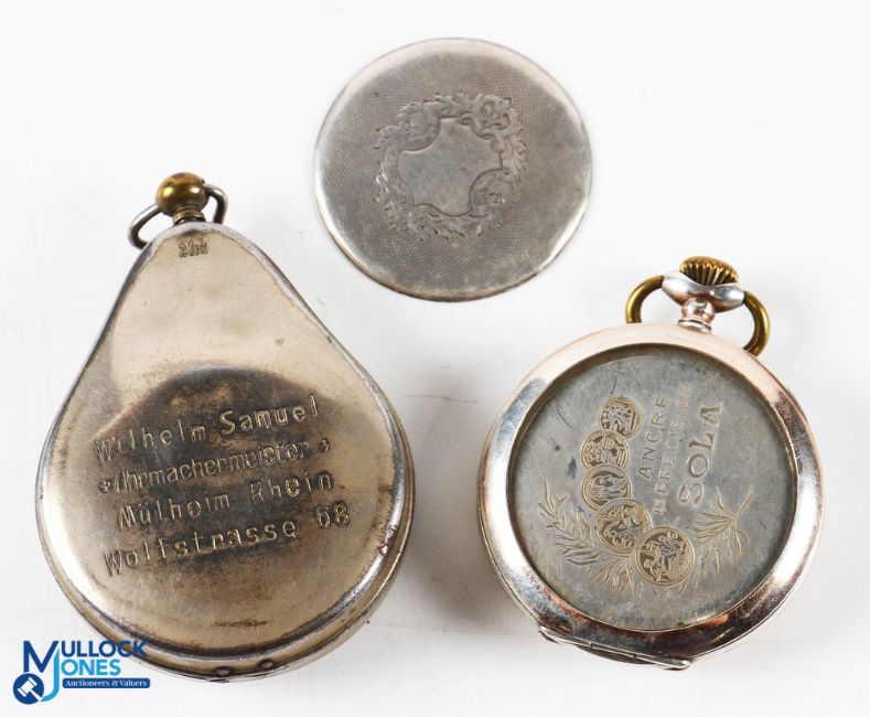 German Miners Pocket Watch Case stamped to rear Wilhelm Samuel Uhrmachermeister Mulheim Rhein Wolfstrasse 68 with an M Latos pocket watch A/F (2)