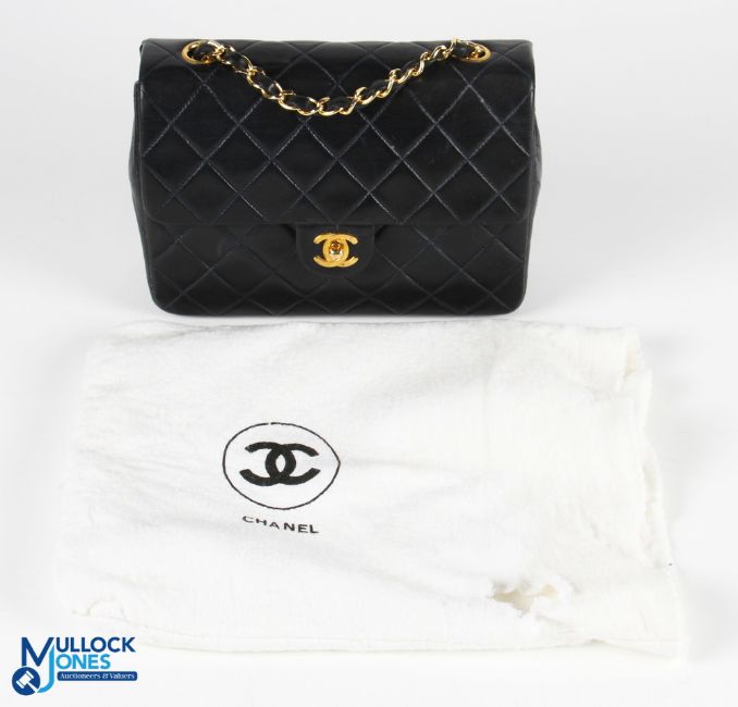 CHANEL Quilted 20 Single Flap Turn Lock Lambskin Chain Mini Shoulder Bag Blue, size #20cm x 15cm x 6.5cm with its original Chanel cloth bag, G+