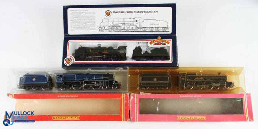 OO Gauge Boxed Locomotives (3) - Hornby R380 BR 4-6-0 'Clevedon Court', R037 BR 4-6-2 'Lady Patricia' and Bachmann 31405 Lord Nelson Class 30852 'Sir Walter Raleigh', all boxes poor to fair conditions (3)