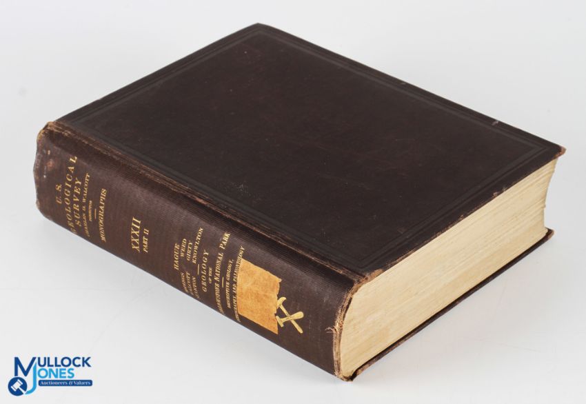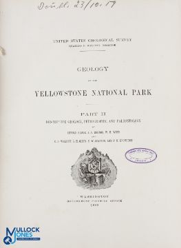 Geology of Yellowstone National Park 1899, Part II only - US Geological Survey, Washington - xvii + 893pp + cxxi illustrations, original binding, gilt lettered spine, ex Leipzig (East Germany) Reference Library (closed after German re-unification) - boards rather loose