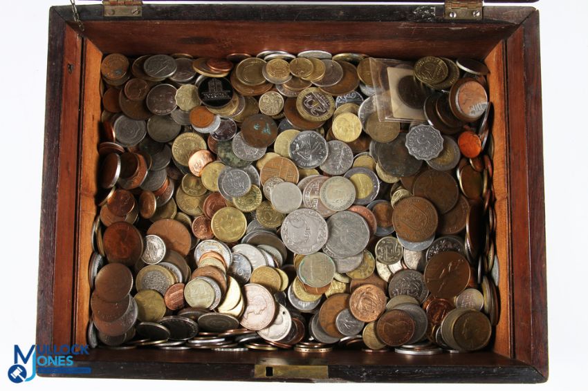 5kg of Mixed World Coins, all within an old wooden box (100s)