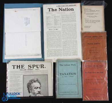 William Morris and Socialism edition of 'The Spur' for January 1916 dedicated entirely to William Morris together with photocopies of his letters on socialism, four socialist publications dating from the 1920s and a 1920 edition of The Nation - a new start for Liberalism