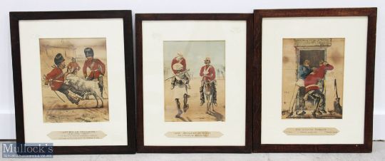 5x Early Humorous Military Prints by Harry Payne of - Welsh Fusiliers, Levee Day St James, One o'clock Sunday, Line Regiment in Egypt, The Model Sentry, all framed and mounted under glass - size 37cm x 45cm (5)