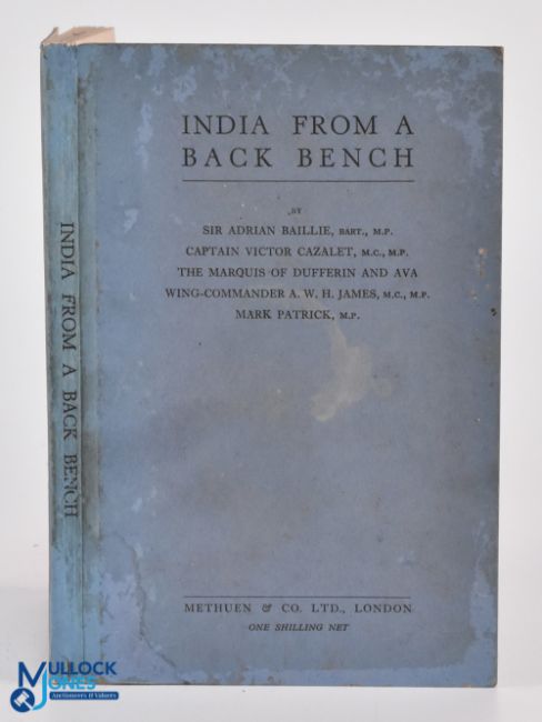 India - 'India from a Back Bench', Methuen & Co, 1934 - a rare collection of essays by four back bench MPs together with the Marquis of Dufferin, expressing their views on the state of India at the time of the rise of the independence movements under Gandhi and others. A rare insight into the thinking within the British Parliament at the time